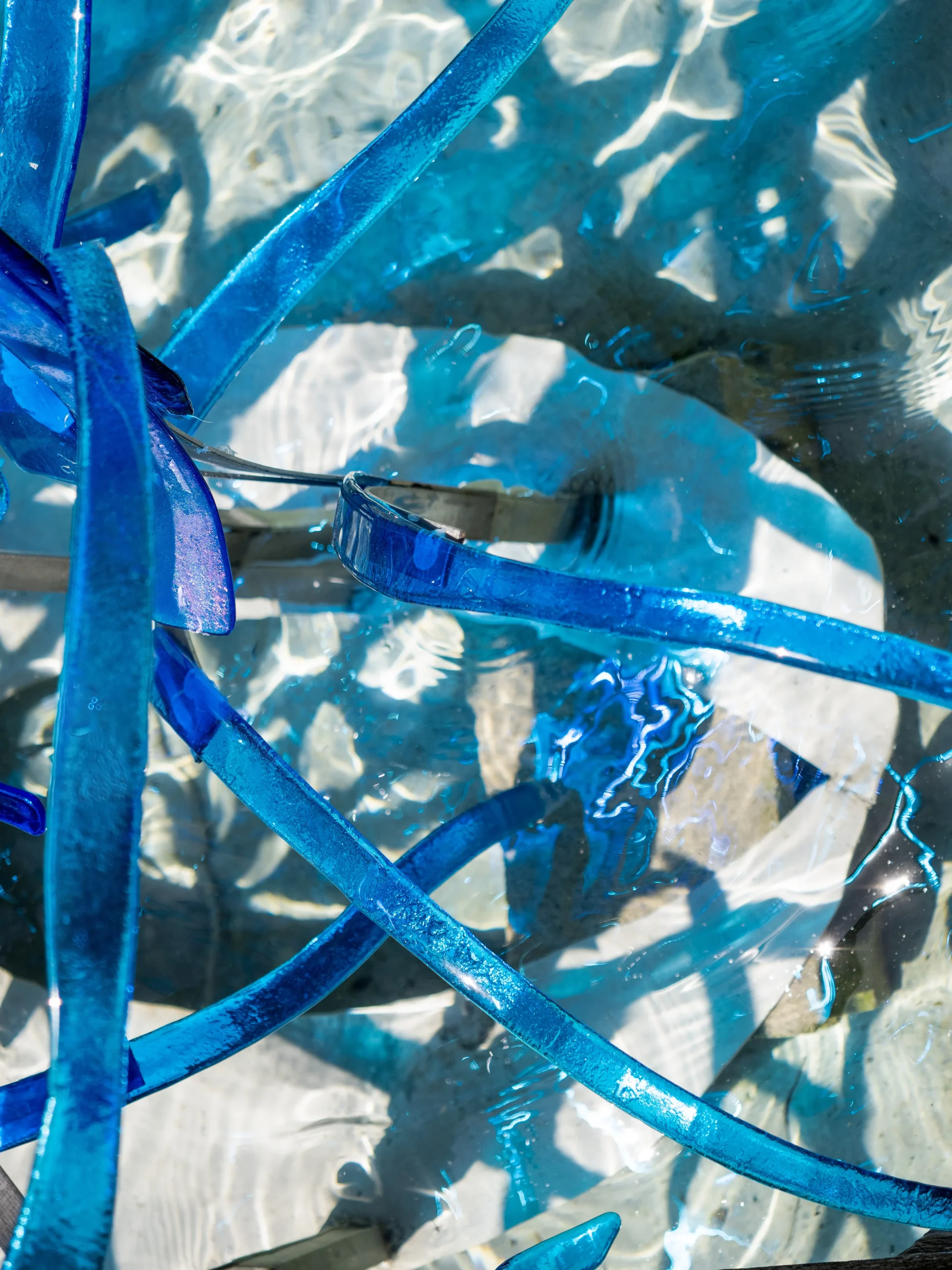 Material: Kiln-formed glass or acrylic ribbons on reflective base